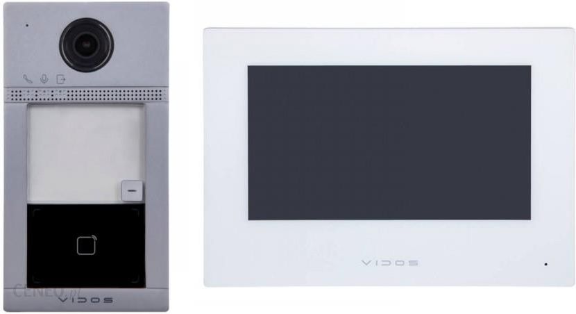 System VIDOS ONEModułowy system wideodomofonowy pracujący w technologii IP. Elastyczna konstrukcja urządzenia pozwala na stworzenie własnej, najlepszej wersji zestawu doskonale dopasowanej do charakterystyki i potrzeb konkretnej instalacji a także upodobań użytkownika.VIDOS ONE sprawdza się doskonale jako samodzielny system wideodomofonowy do małych instalacji jedno i kilkurodzinnych jak i dla złożonych instalacji osiedlowych z obsługą wielu wejść oraz portiernią. Wszystkie elementy systemu są ze sobą kompatybilne.Zawartość zestawu:Monitor VIDOS ONE M2010 (1 szt.)Stacja bramowa VIDOS ONE VILLA S2401-N (1 szt.)Switch VIDOS ONE – różne modele (wymagany do pracy systemu) – Do ninjeszego zestawu polecany jest switch 4-portowy VIDOS ONE PS42-60 (1 szt.). Jest niezbędny dla działania systemu wideodomofonowego. Łączy oraz zasila stację bramową oraz *monitor(y). Podłączany jest do niego również router co pozwala na przekierowanie połączeń na aplikację w smartfonie. Zastosować można switch PoE dowolnego producenta, ale należy pamiętać żeby charakteryzował się parametrami identycznymi jak switche firmy VIDOS. Przy wyborze switcha należy wziąć pod uwagę ewentualną dalszą rozbudowę systemu i wybrać switch, który będzie miał zapas portów PoE. *monitory można zasilić lokalnie i podłączyć do systemu przez sieć Wi-Fi.Elektrozaczep VIDOS – różne modele (opcjonalnie)Zasilacz 12 V (1 szt.) do elektrozaczepu – gratisAkcesoria montażowe dla stacji bramowej i monitoraInstrukcja w języku polskim dla stacji bramowej oraz monitoraDedykowany schemat podłączeniowy dla zestawu – gratisPomoc techniczna drogą mailową/telefoniczną przy montażu i uruchomieniuGwarancja 36 miesięcy na podstawie dowodu zakupu (paragon lub faktura VAT)Paragon/Faktura VATMonitor VIDOS ONE M2010Wewnętrzna jednostka systemu wideodomofonowego VIDOS ONE. Monitor umożliwia komunikację ze stacją bramową, podgląd obrazu ze wszystkich kamer IP w systemie oraz zarządzanie czujnikami alarmowymi zintegrowanymi z wideodomofonem.Multimedialny monitor wyposażony jest w 7″ dotykowy ekran o wysokiej rozdzielczości. Wielojęzyczne, intuicyjne menu ekranowe umożliwia zarządzanie całym systemem z jednego miejsca.Wbudowany slot na kartę microSD pozwala na zapisywanie obrazów z wizyt gości i podglądu z kamer, który jest dostępny bez wywołania ze stacji bramowej. Łączność WI-FI umożliwia zainstalowanie i skonfigurowanie urządzenia w pomieszczeniach gdzie nie ma doprowadzonej infrastruktury sieciowej.Monitor współpracuje i jest całkowicie konfigurowalny przy użyciu programu VIDOS ONE PC. Kompatybilny z aplikacją na urządzenia mobilne VIDOS ONE. Ponadczasowy, skromny design trafi w niemal każdy gust i doskonale wpisuje się w nowoczesne wnętrza.Funkcje:Monitor głośnomówiącyEkran: 7″ dotykowy TFT LCD 1024 x 600 pxWbudowany moduł Wi-Fi – IEEE 802.11 b/g/n – możliwość przekierowania obrazu ze stacji bramowej poprzez Wi-Fi domowePłynna regulacja parametrów monitora: jasności obrazu, głośności dzwonka i rozmowyAutomatyczna rejestracja obrazu z kamery podczas połączeniaRejestracja wiadomości głosowych pozostawionych przez gościInterkom wewnętrznyLista lokatorów oraz chronologiczny rejestr zdarzeńPodgląd obrazu ze stacji bramowych i kamer IPFunkcje: SOS / nie przeszkadzaćKomunikacja dwukierunkowa „duplex”Wbudowany system redukcji echaWejścia alarmowe: 8Wyjścia alarmowe: 2Interfejs RS-485Urządzenie działa w oparciu o protokoły TCP/IP, SIP, RTSPWbudowana pamięć 128 MBObsługa kart microSD do 32 GB (brak w zestawie)Program do zarządzania: VIDOS ONE PCAplikacja mobilna: VIDOS ONEZasilanie: DC 12 V lub IEEE 802.3af PoEInterfejs Ethernet: 1x RJ45 10/100 Base-TZakres temperatur pracy: -10°C ~ +55°CZalecana wilgotność otoczenia: 10% ~ 90%Pobór mocy: ≤6 WDostępne języki: polski, angielski, bułgarski, chorwacki, czeski, francuski, grecki, hiszpański, holenderski, niemiecki, portugalski, rumuński, serbski, węgierski, włoskiMateriał: tworzywo sztuczne / kolor białyWymiary: 200 x 140 x 25 mmStacja bramowa VIDOS ONE VILLA S2401-NStacja bramowa S2401-N z serii Villa z wbudowanym czytnikiem zbliżeniowym i szyldem na nazwisko. Wyposażona w 2 Mpx (full HD) kamerę z obiektywem typu fisheye o kącie widzenia 129 stopni. Podświetlenie nocne LED IR w połączeniu z systemami wspomagającymi dynamikę i podświetlenie obrazu (WDR, DNR, BLC) doskonale odwzorowuje rzeczywistość oraz pozwala na komfortowe korzystanie z urządzenia w warunkach niedostatecznej widoczności.Panel wyposażony jest w dwukierunkowy system audio (duplex) z funkcją redukcji zakłóceń i eliminacji echa. Stacja bramowa posiada 4 wejścia alarmowe, którymi można zarządzać z poziomu monitora oraz 2 przekaźniki do sterowania furtką i bramą automatyczną. Urządzenie zasilane jest w technologii PoE (IEEE 802.3af) możliwe jest również zasilanie prądem stałym 12V z zewnętrznego zasilacza.Model przeznaczony do montażu natynkowego.Funkcje:Jednoabonentowa stacja bramowaPrzetwornik kamery CMOS 2 Mpx / Rozdzielczość 1920x1080Kąt widzenia kamery – 129°Kompresja wideo – H.264Komunikacja dwukierunkowa DUPLEXOświetlacz podczerwieni – IR3mFunkcje obrazu: BLC, DNR, True WDRPodświetlenie przycisków LED (kolor biały)2 niezależne wyjścia przekaźnikowe NC/NOWbudowany czytnik zbliżeniowy w standardzie MIFARE 13.56 MHzInterfejs sieciowy: 1x RJ45 10/100mWi-Fi 2.4 GHz (zasięg zależny od dostępności sygnału)4 wyjścia alarmoweCzujnik antysabotażowyObsługa kart microSD do 128 GBObsługa zdalna przez komputer przez VIDOS ONE PCObsługa mobilna przez aplikacje VIDOS ONEZasilanie: DC 12V/830 mA (max) / PoE 802.3afKlasa szczelności: IP65Klasa odporności: IK08Materiał: Aluminium / tworzywo sztuczneTemperatura pracy: -40°C ~ 53°CWymiary: 174 x 91 x 29 mmMożliwy montaż z daszkiem DP2400-NAplikacja VIDOS ONEProgram VIDOS ONE PC (d